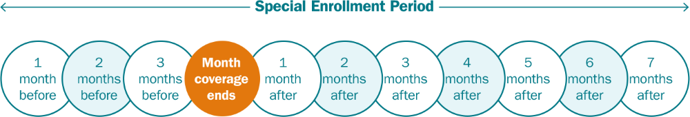 Your Medicare Special Enrollment Period will run for eight months, starting when your employer-sponsored health coverage ends and ending seven months later. Note that retiree health insurance and COBRA insurance do not count as employer-sponsored insurance for the purposes of the Special Enrollment Period. Further, some small employers do not provide medical coverage for employees past the age of 65.