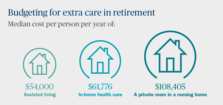 - Self-funding: Some people can save enough for retirement to fund long-term care expenses out of pocket, though growth rates for long-term care expenses should be considered when determining how much to save. Using a home equity line of credit or a reverse mortgage are other self-funding options. If you plan to self-fund long-term care through your retirement accounts, be mindful of the potential tax impact. Taking larger distributions from pre-tax accounts, such as IRAs and 401(k) plans, for long-term care may bump you into a higher tax bracket.