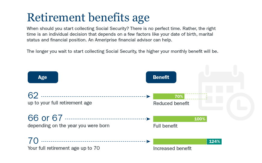 The longer you wait to start collecting Social Security, the higher your monthly benefit will be up to age 70. However, waiting may not be the right choice for everyone. The appropriate time for you will depend on your financial situation and your goals.