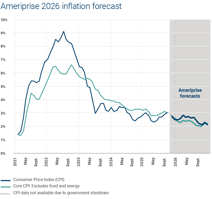 - Economic growth: The U.S. economy should be supported by strong infrastructure, technology and manufacturing investments in 2026. Healthy consumer trends, moderating inflation and fiscal tailwinds could enable gradual Federal Reserve rate cuts and sustained domestic growth.